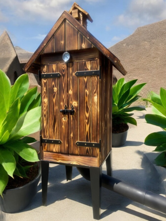 Wędzarnia stoi na solidnej podstawie z eleganckimi poszerzanymi nogami, które idealnie pasują do zawiasów wykańczających drzwi.